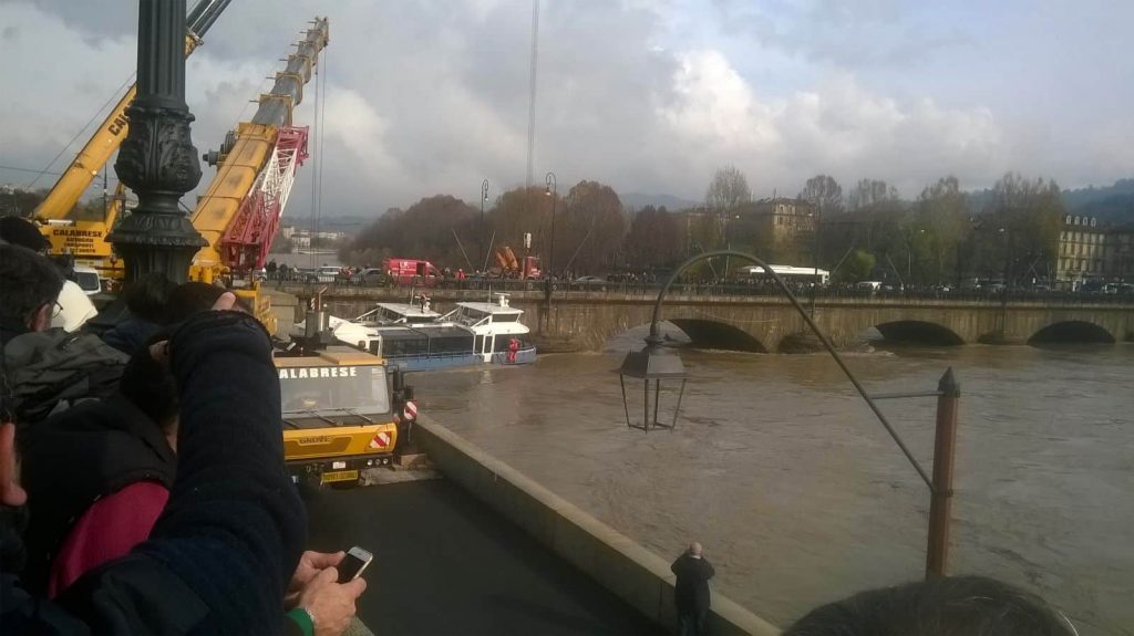 Queste alcune immagini di Torino e del fiume in piena.